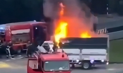 Ảnh: Đang chở hàng bất ngờ xảy ra hoả hoạn, tài xế xe tải chở thẳng đám cháy đến Đội Cảnh sát Phòng cháy Chữa cháy