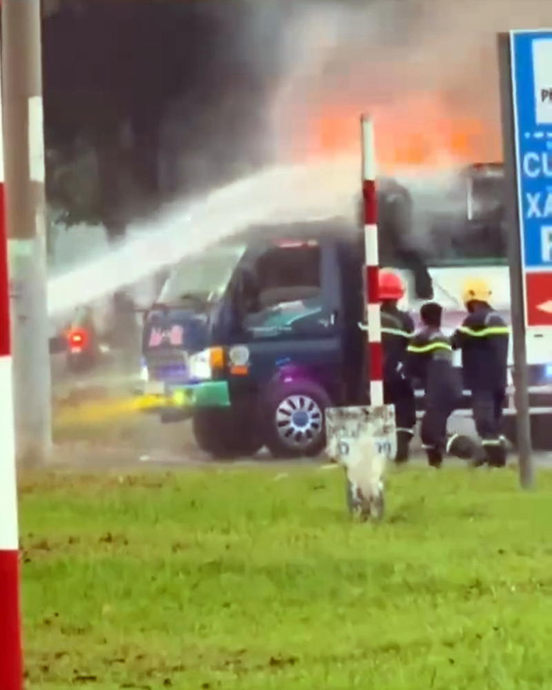 Nam tài xế nhanh chóng đưa xe đến ngay trước trụ sở đội nhờ hỗ trợ. Ngay lập tức, 12 chiến sĩ cùng 2 xe nước được triển khai, dập tắt đám cháy trong khoảng 4 phút.