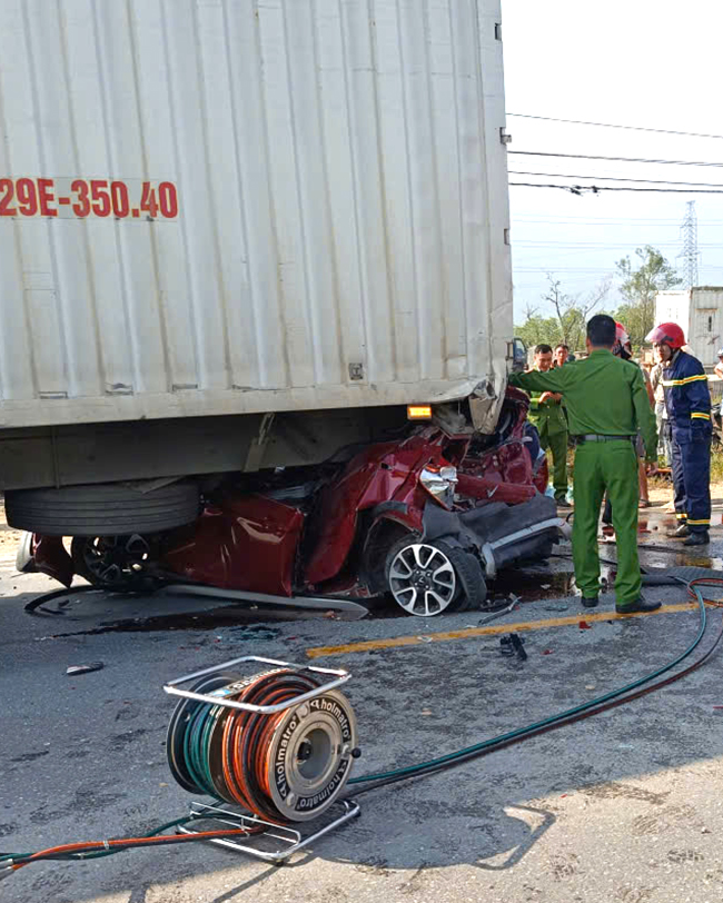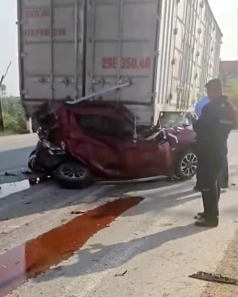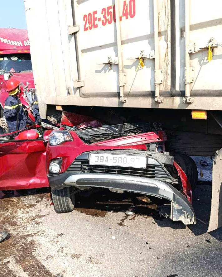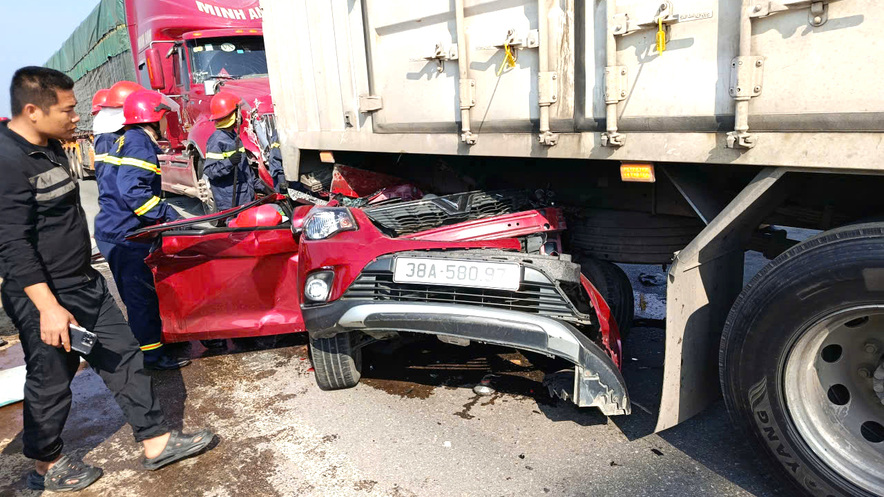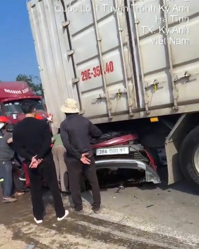 Thông tin ban đầu, tài xế xe container di chuyển theo hướng Bắc - Nam do không giữ khoảng cách an toàn đã đâm vào chiếc VinFast Fadil biển kiểm soát 38A-580.97 từ phía sau, đẩy chiếc xe du lịch này chui vào gầm chiếc công-ten-nơ BKS 29E-350.40 phía trước.