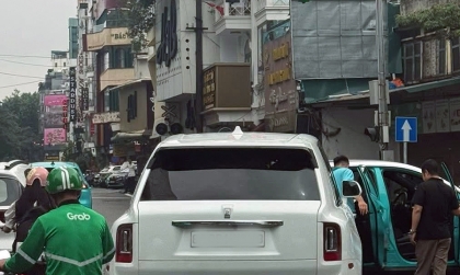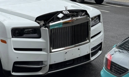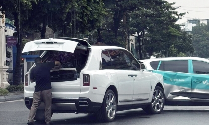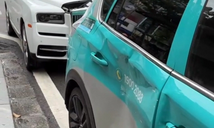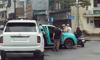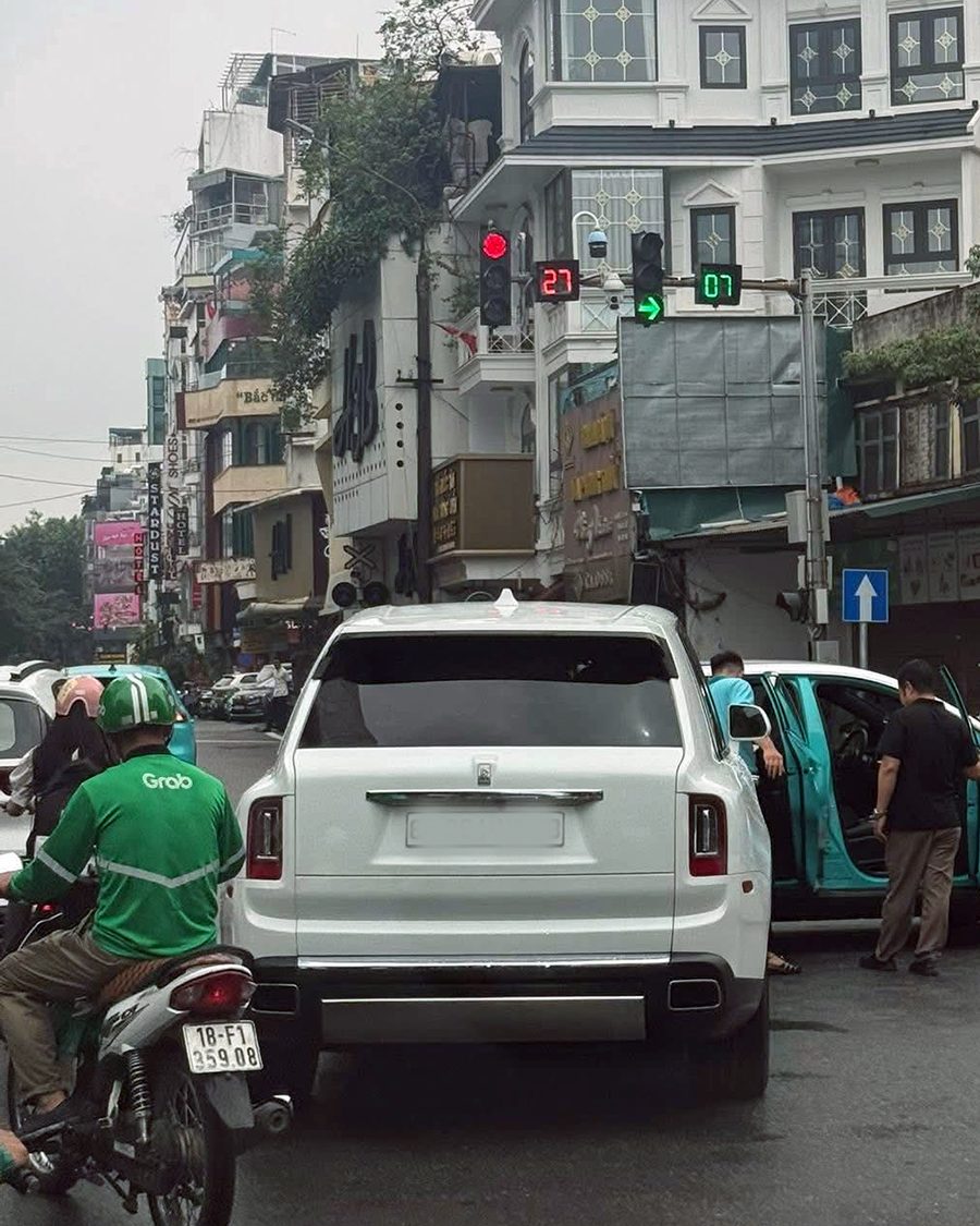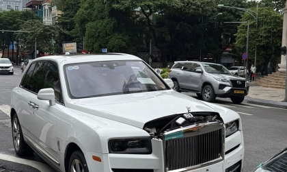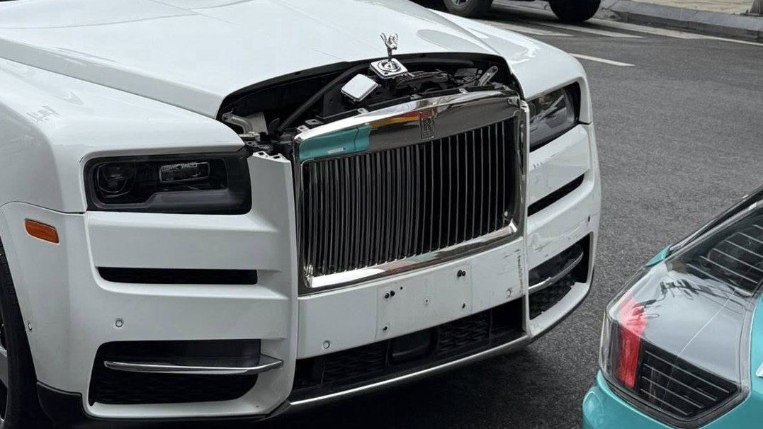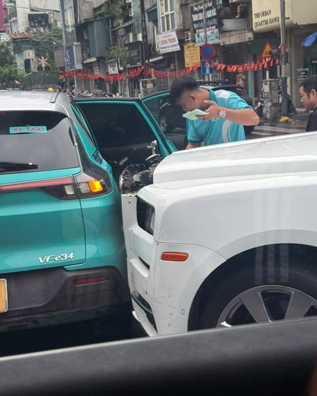 Cú đâm được coi là khá nhẹ khi chiếc Cullinan chỉ đâm móp méo bên hông chiếc xe điện và bản thân cũng bị bung ốp phía trên lưới tản nhiệt, và rất may hình như cặp đèn pha không hề hấn gì. Chiếc siêu xe SUV hạng sang này mang biển số ngoại giao.
