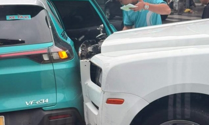 Ảnh TNGT: "Biệt thự" Rolls-Royce Cullinan đâm vào VinFast VF e34 giữa thủ đô