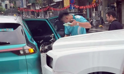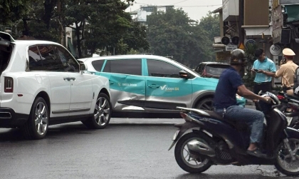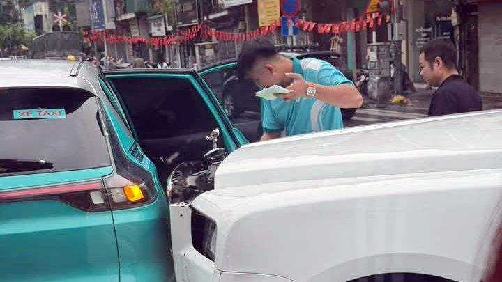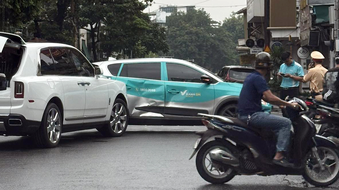 Tại ngã tư, chiếc Rolls-Riyce Cullinan đã đâm phả hông xe bên lái của chiếc taxi VinFast VF e34 đang lưu thông qua ngã tư theo hướng từ Trần Phú về ga Hàng Cỏ.