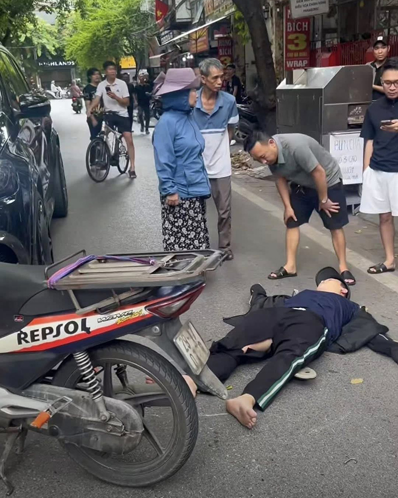 Vì xảy ra trong phố nên vụ việc xảy ra không phải quá nghiêm trọng, tuy nhiên thanh niên đi trên chiếc xe máy Honda vẫn “ngất lâm sàng” tại chỗ.