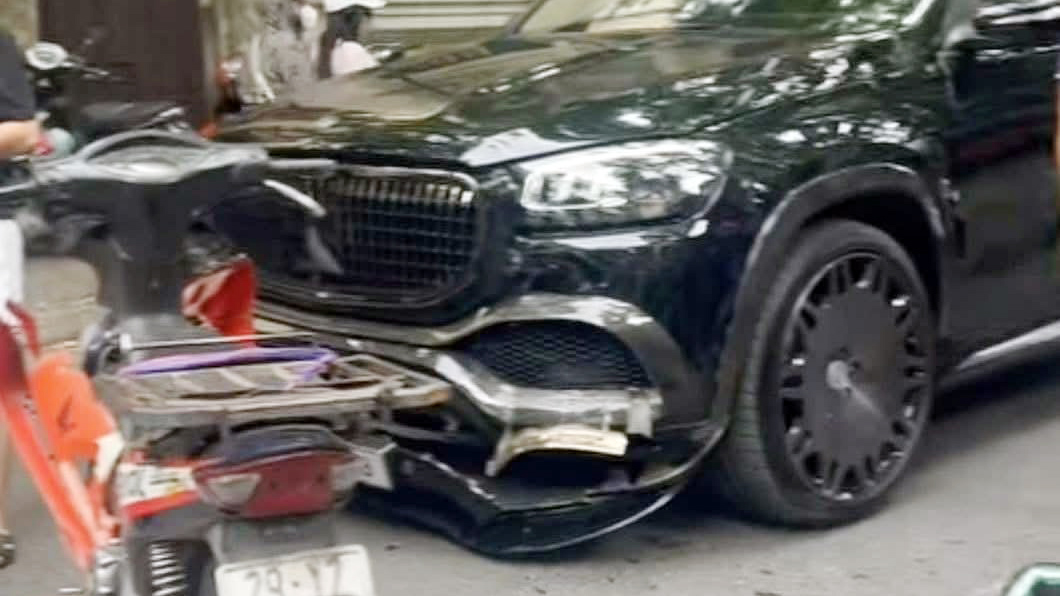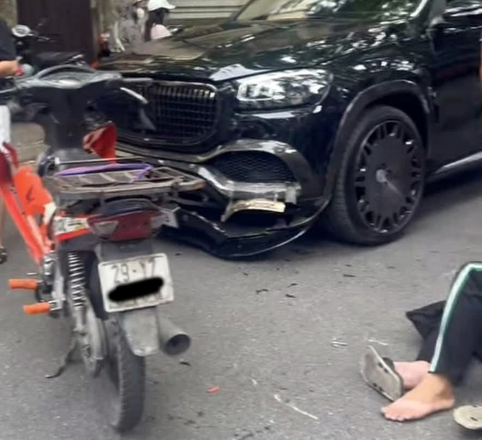 Tai nạn xảy ra tại trên phố Cao Bá Quát phường Điện Biên, Hà Nội khi một thanh niên đi xe máy đã đâm vào chiếc Mercedes-Maybach GLS.