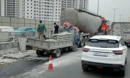 Khoảng 4h45 sáng ngày 16/1, , xe bồn chở xi măng mang biển kiểm soát 30M-035.XX, lưu thông trên đường Vành đai 3 trên cao, theo hướng Mai Dịch đi cầu ...