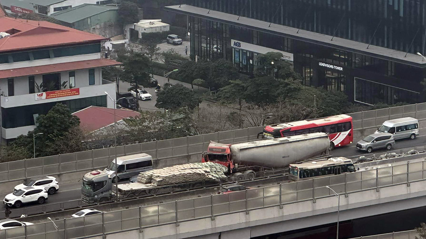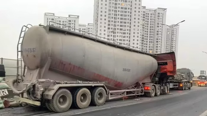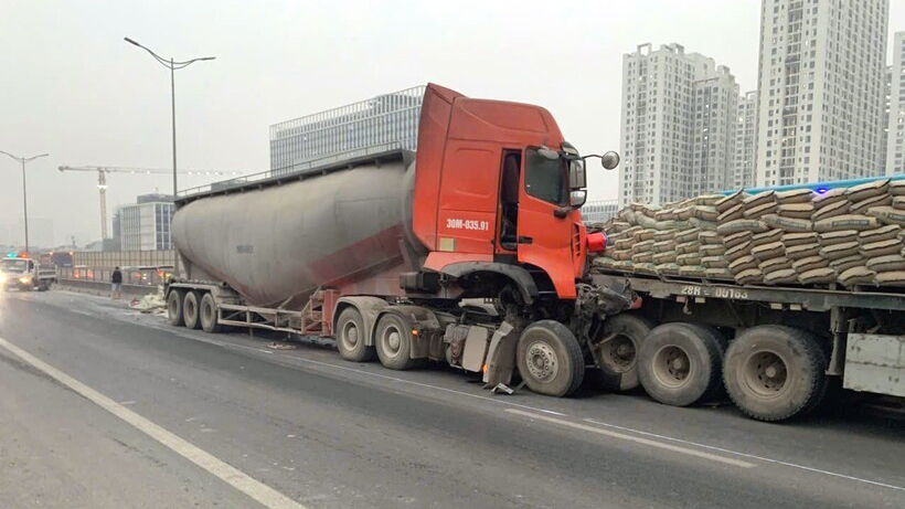 Khoảng 4h45 sáng ngày 16/1, , xe bồn chở xi măng mang biển kiểm soát 30M-035.XX, lưu thông trên đường Vành đai 3 trên cao, theo hướng Mai Dịch đi cầu Thăng Long, khi đến khu vực gần cột đèn chiếu sáng CS1/PVD/32, đã xảy ra va chạm với ô tô đầu kéo chở xi măng biển kiểm soát 98C-348.XX cầm lái.
