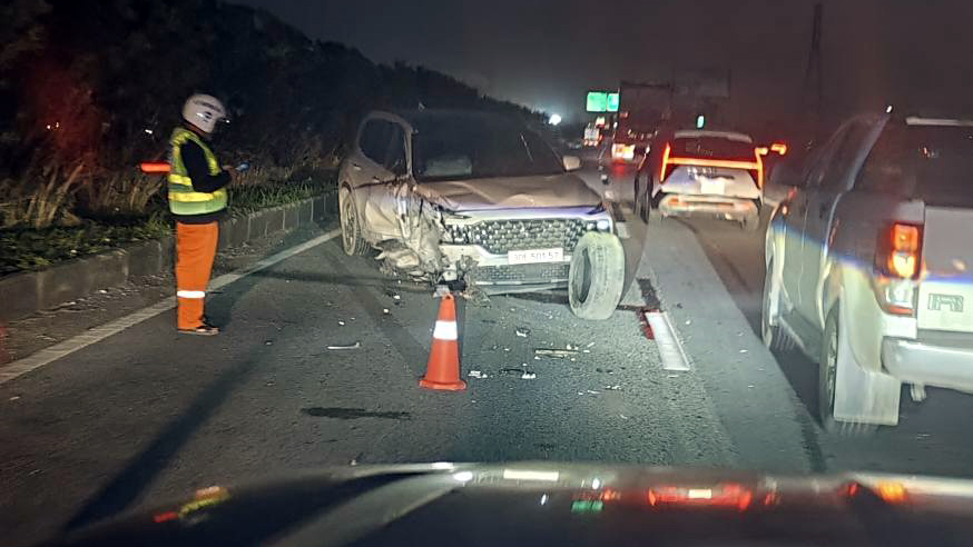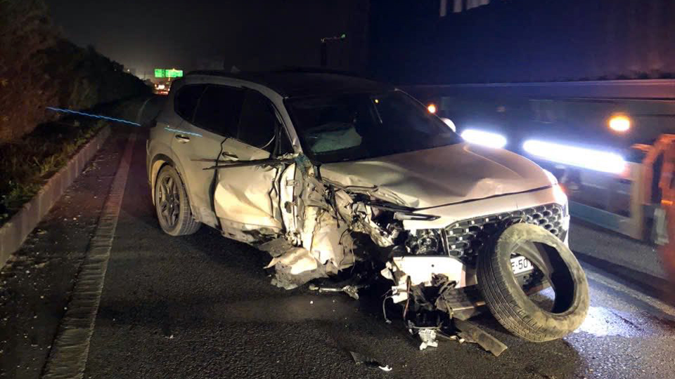 Sự việc xảy ra vào khoảng 17h15 ngày 15/11 đoạn gần nút giao quốc lộ 18 (cao tốc CT09, Nội Bài – Bắc Ninh – Hạ Long) khi chiếc Hyundai Santa Fe không hiểu vì lý gì đã lao vào làn đường khẩn cấp, đâm với đuôi chiếc xe tải đang dừng thay lốp.