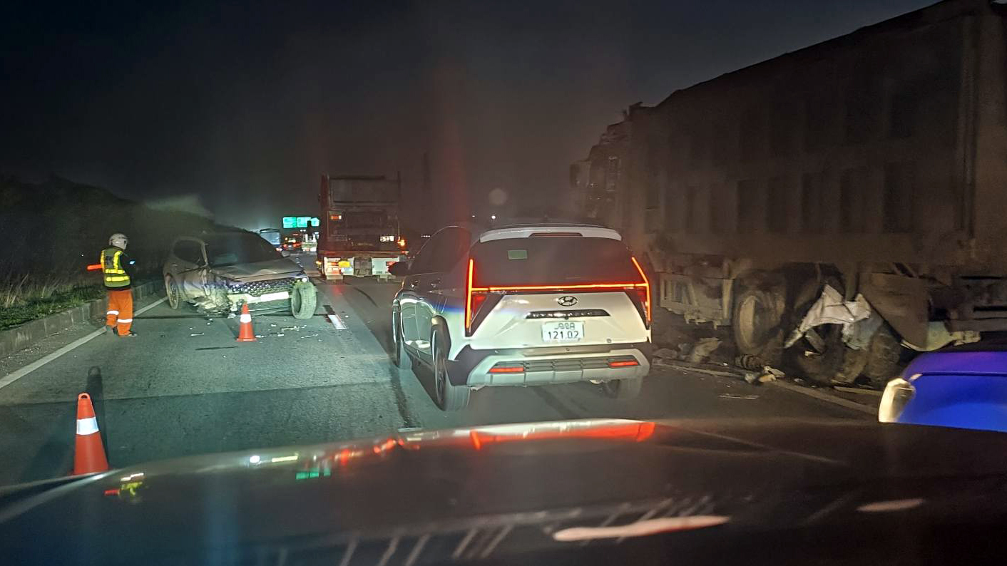 Ảnh TNGT: Hyundai Santa Fe đâm vào đuôi xe tải đang thay lốp trên cao tốc Hà Nội - Thái Nguyên