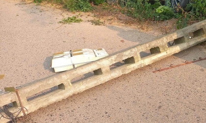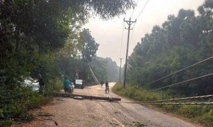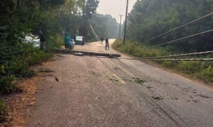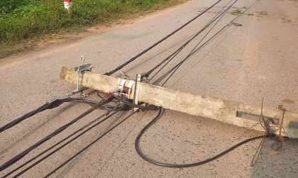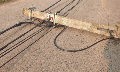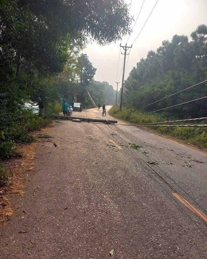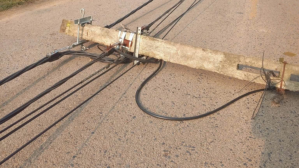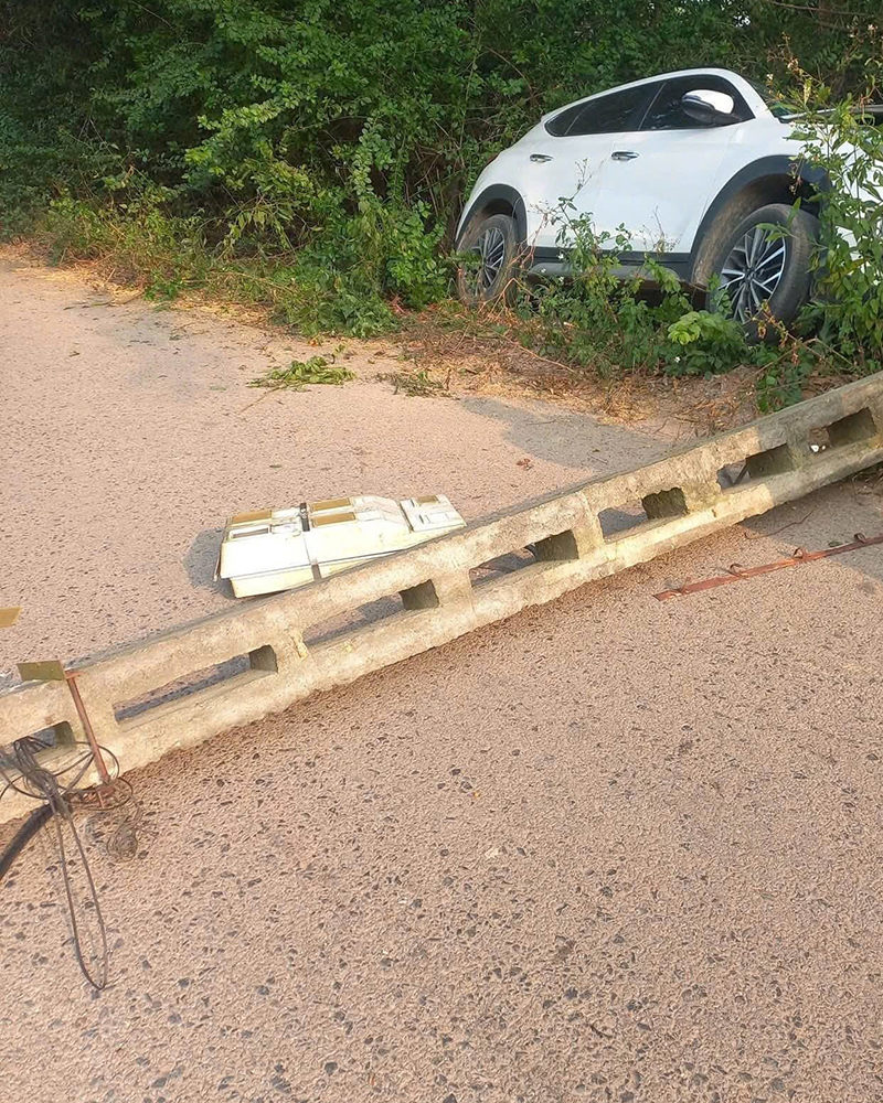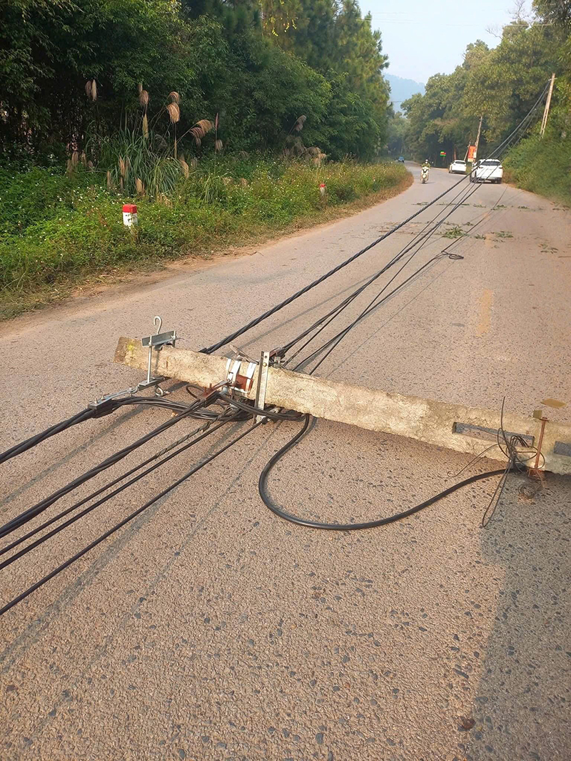 Cú đâm ở tốc độ cao đã khiến cột điện gãy gập, đổ ra mặt đường, chắn cả lối đi lại.