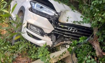 Sự việc xảy ra tại Sóc Sơn (Hà Nội) ngày 2/12/2025 khi không hiểu gì lý gì, tài xế cầm lái chiếc Hyundai Santa Fe đã không làm chủ tốc độ, lao ra vệ đường đâm gục cột điện.