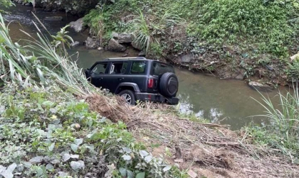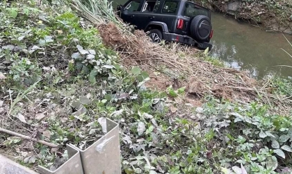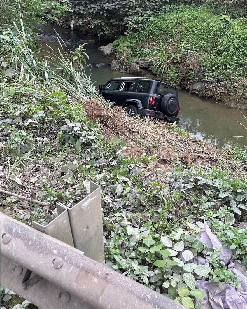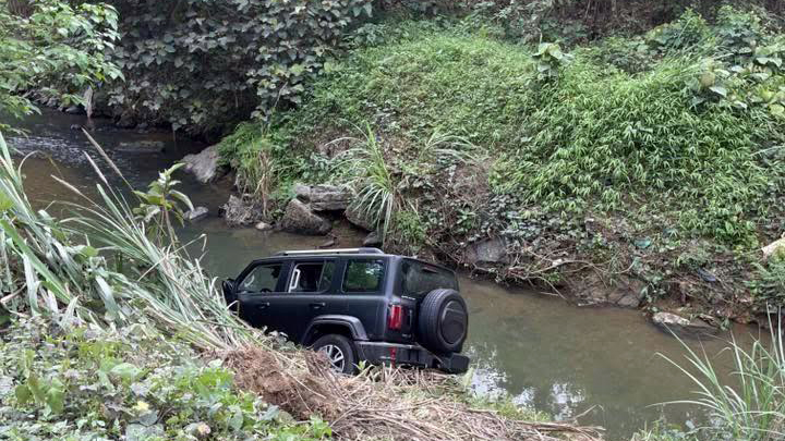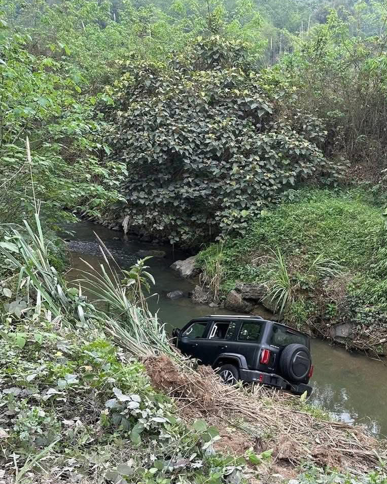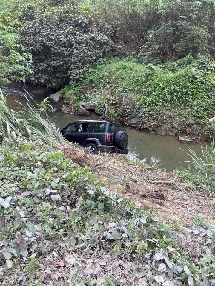 Ảnh TNGT: Không kiểm soát được tay lái, tài xế phóng thẳng Tank 300 xuống suối