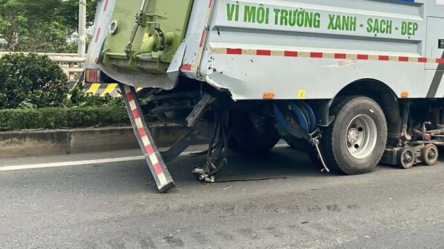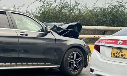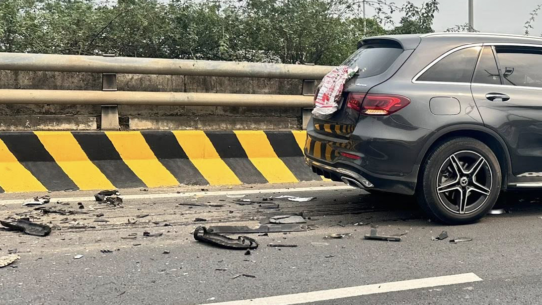 Lái xe thiếu tập trung, tài xế Mercedes-Benz GLC húc đuôi xe tưới cây. Sự việc xảy ra ngày 1/4/2/26 trên đại lộ Võ Nguyễn Giáp, chiều từ sân bay Nội Bài về ...