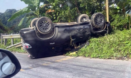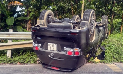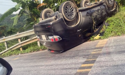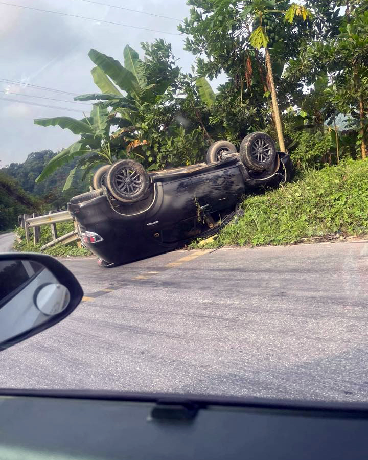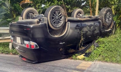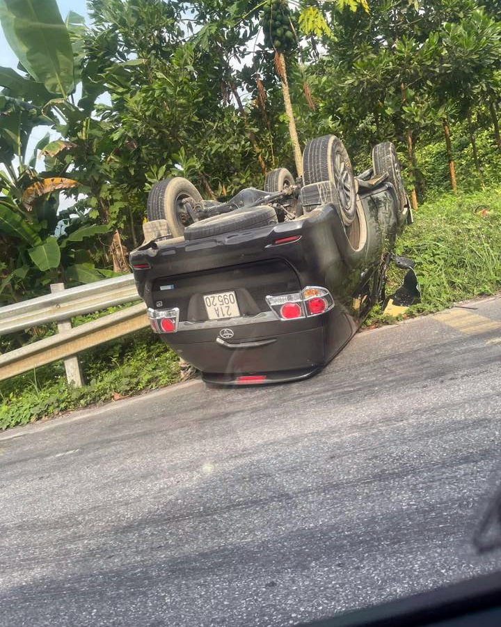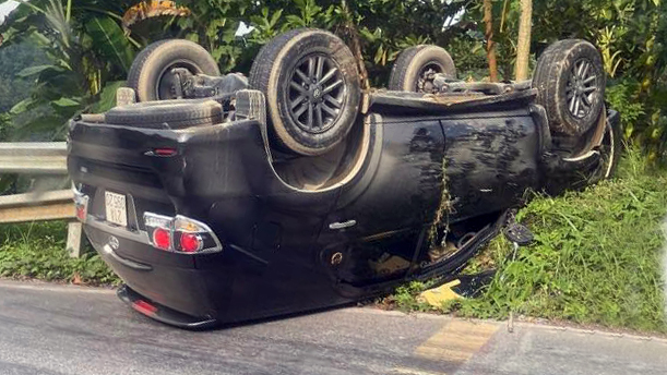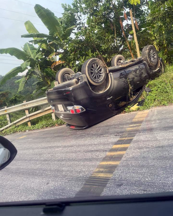 Ảnh TNGT: Lại thêm Toyota Fortuner bị lật ngửa giữa đường sau tai nạn