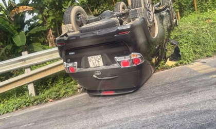 Sự việc xảy ra tại Lạng Sơn khi không hiểu làm cách nào mà sau một va chạm, chiếc Toyota Fortuner biển kiểm soát 21A 095/20 lại có thể lật ngửa ...