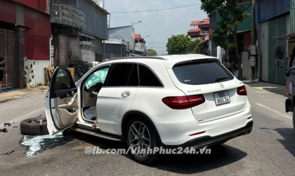 Ảnh TNGT: Mercedes-Benz GLC văng bánh xe ra ngoài trong một tình huống đối đầu xe tải