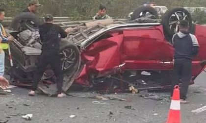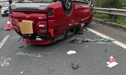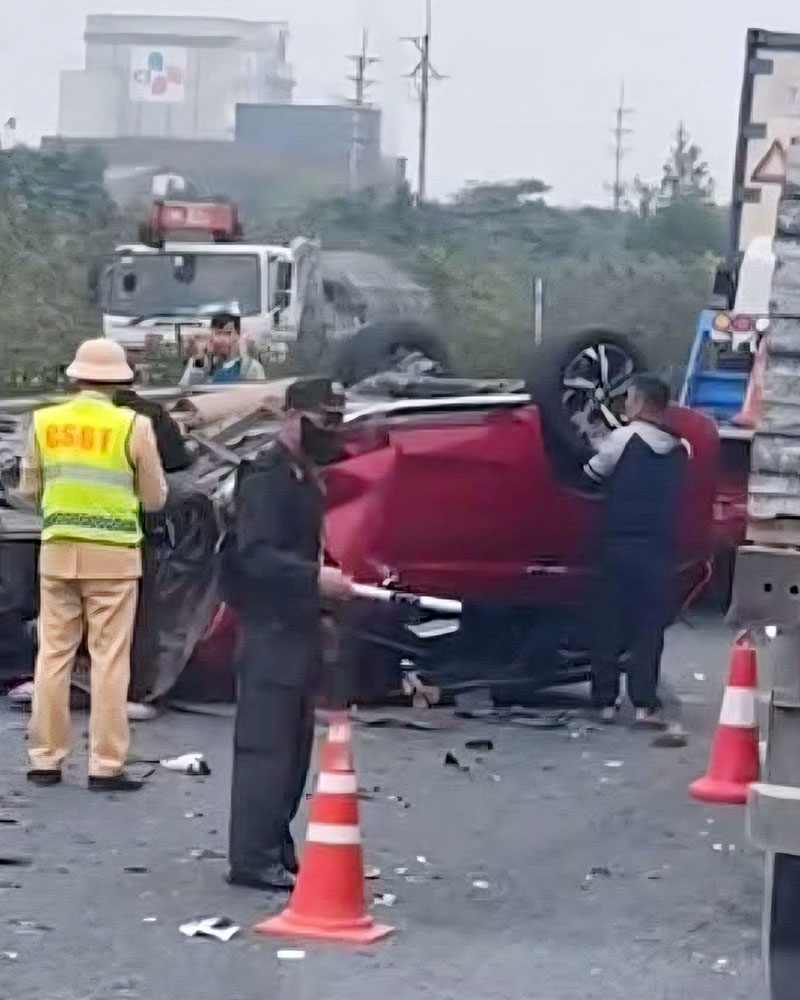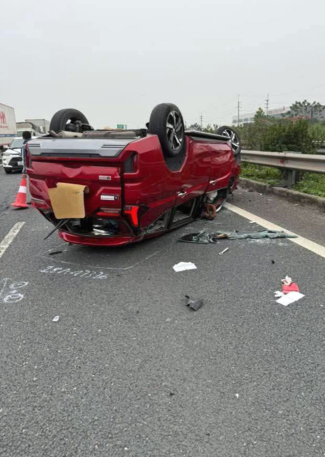 Ảnh TNGT: Mitsubishi Xpander lật ngửa trên cao tốc vì đâm đuôi xe đầu kéo