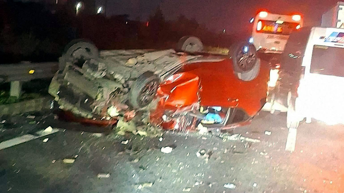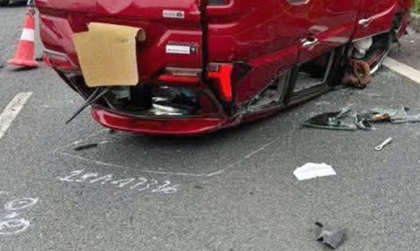 Clip TNGT: Lao vào dải phân cách, Toyota Veloz lật ngửa, nằm như rùa giữa đường
