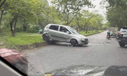 Ảnh TNGT: Hyundai Creta bị công-ten-nơ đâm bắn lên dải phân cách