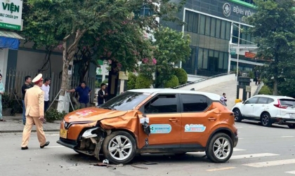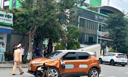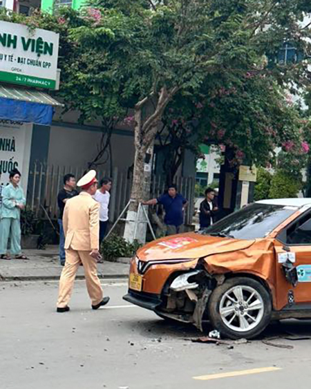 Tai nạn xảy ra trên đường Lê Thánh Tông (Hạ Long - Quảng Ninh) khi không hiểu vì lý do gì tài xế cầm lái chiếc VinFast Vf 5 biển kiểm ...