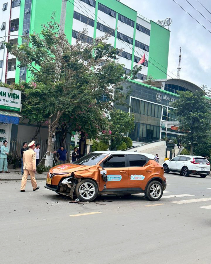 Tai nạn xảy ra trên đường Hùng Vương, phường Chiềng Cơi, thành phố Sơn La khi không hiểu vì lý do gì tài xế trên hai chiếc Ford Ranger và VinFast VF 5 đi ngược chiều đã đâm vào nhau, ngay trước cổng bệnh viện đa khoa.