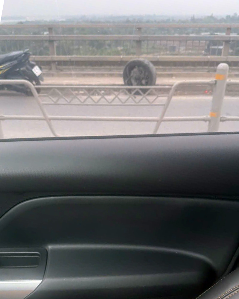 Ảnh TNGT: Volvo S90 gãy bánh trước trên cầu Nhật Tân (Hà Nội)
