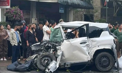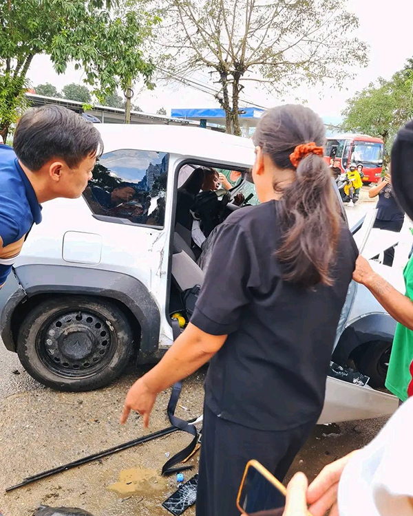 Chiếc VinFast VF 3 đã va chạm với xe đầu kéo với tốc độ khá cao Hậu quả là chiếc xe điện bị vỡ nát đầu xe, với hai người bị mắc kẹt trong cabin.