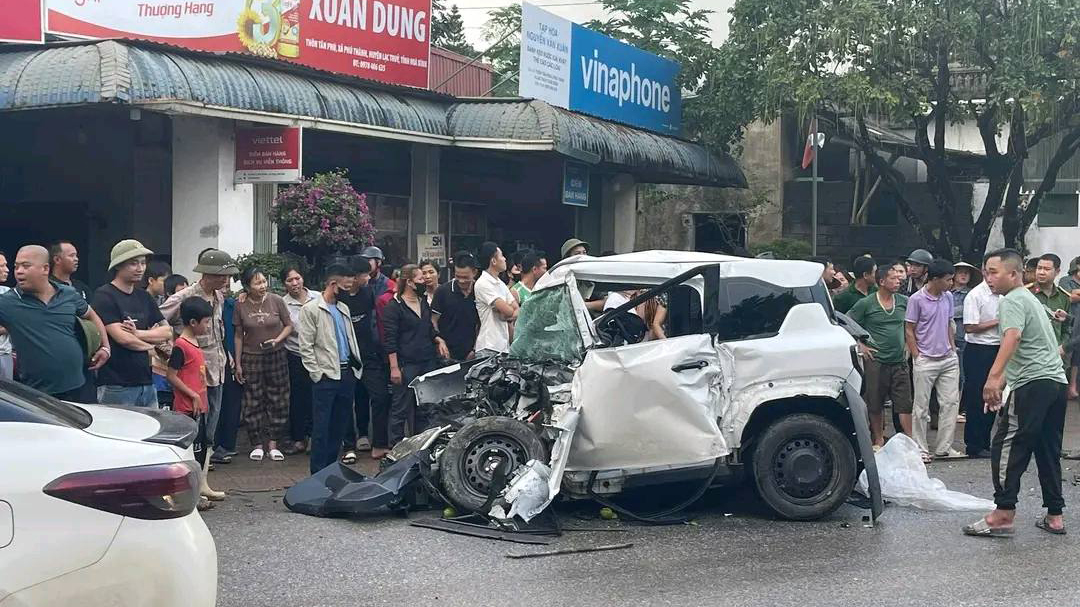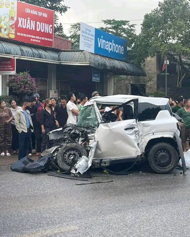 Tại nạn xảy ra trước cổng làng văn hóa thôn Tân Phú, Phú Thành, Lạc Thủy, Hòa Bình. Chiếc VinFast VF 3 đã va chạm với xe đầu kéo với tốc độ khá cao ...