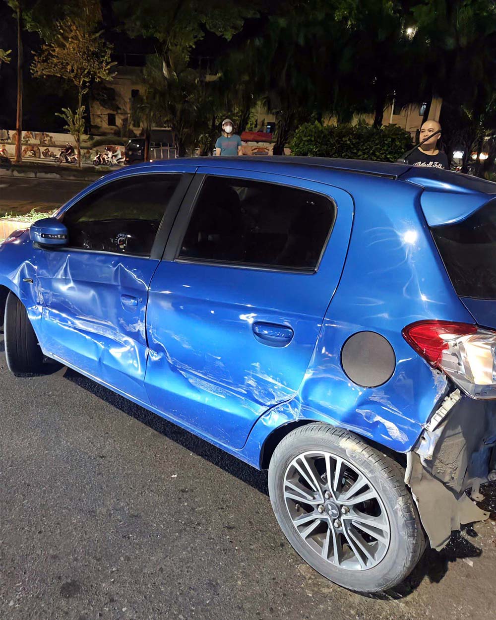 Dù va quệt ở tốc độ không cao nhưng với trọng lượng lớn, chiếc xe tải cũng đủ khiến chiếc Mirage bị bẹp nát môt bên hông, vỡ cản trước..., rất may là tai nạn không để lại hậu quả nào liên quan đến con người.