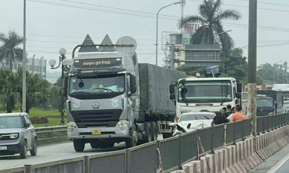 Sự việc xảy ra tại chân cầu Thăng Long (Hà Nội), hướng từ sân bay Nội Bài về thành phố.
