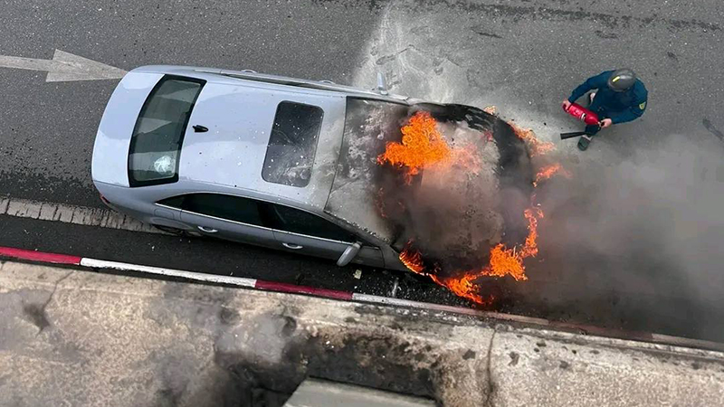 Tài xế nhanh chóng tấp xe sát lề đường trước khi ngọn lửa bốc lên và lan nhanh bao trùm đầu xe.