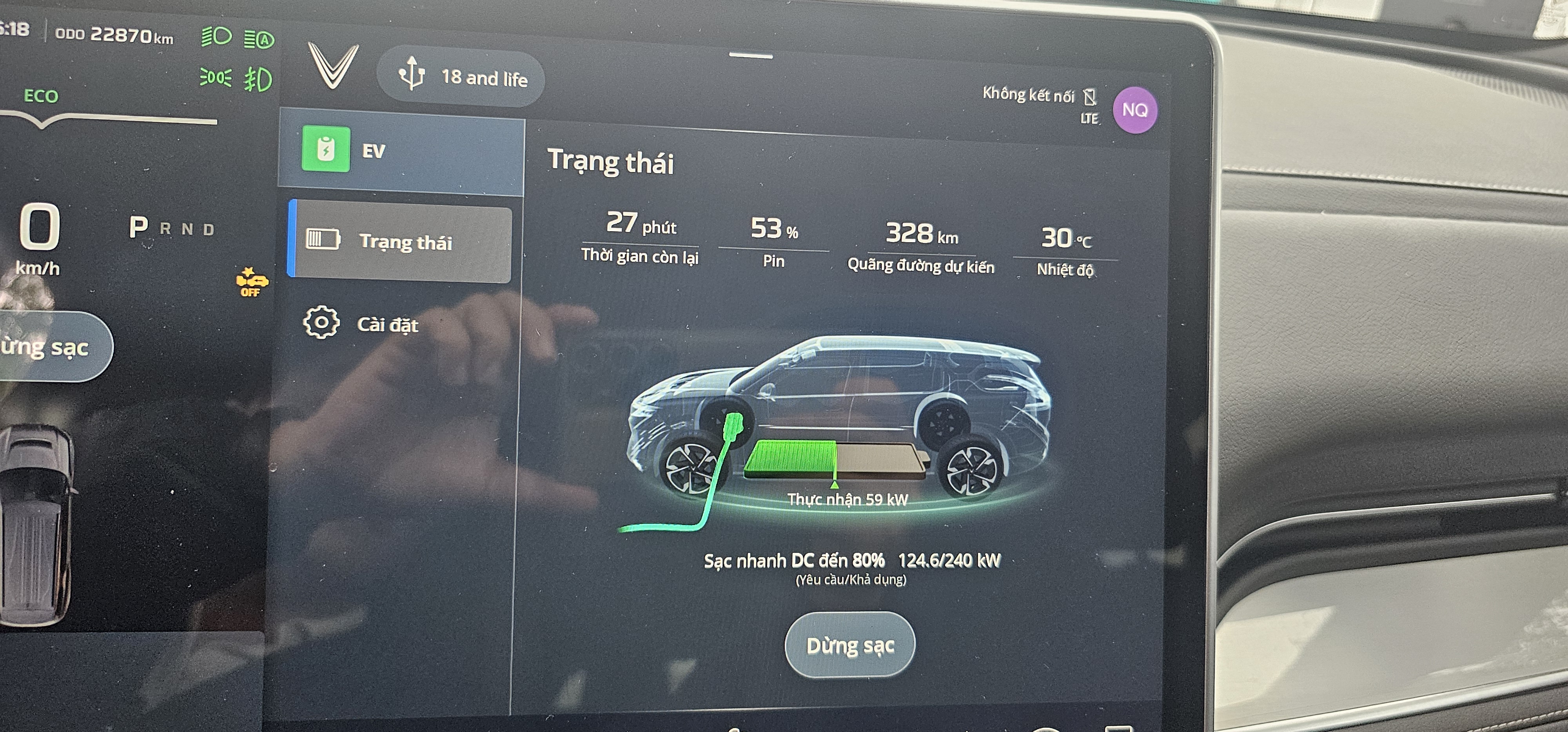 Vấn đề tiếp theo là sạc chậm ở trụ 250kw, xe chỉ nhận loanh quanh 110h đến 130kwh, dù cho tại thời điểm đó trạm sạc vắng xe và nhiệt độ pin loanh quanh 30 32 độ C