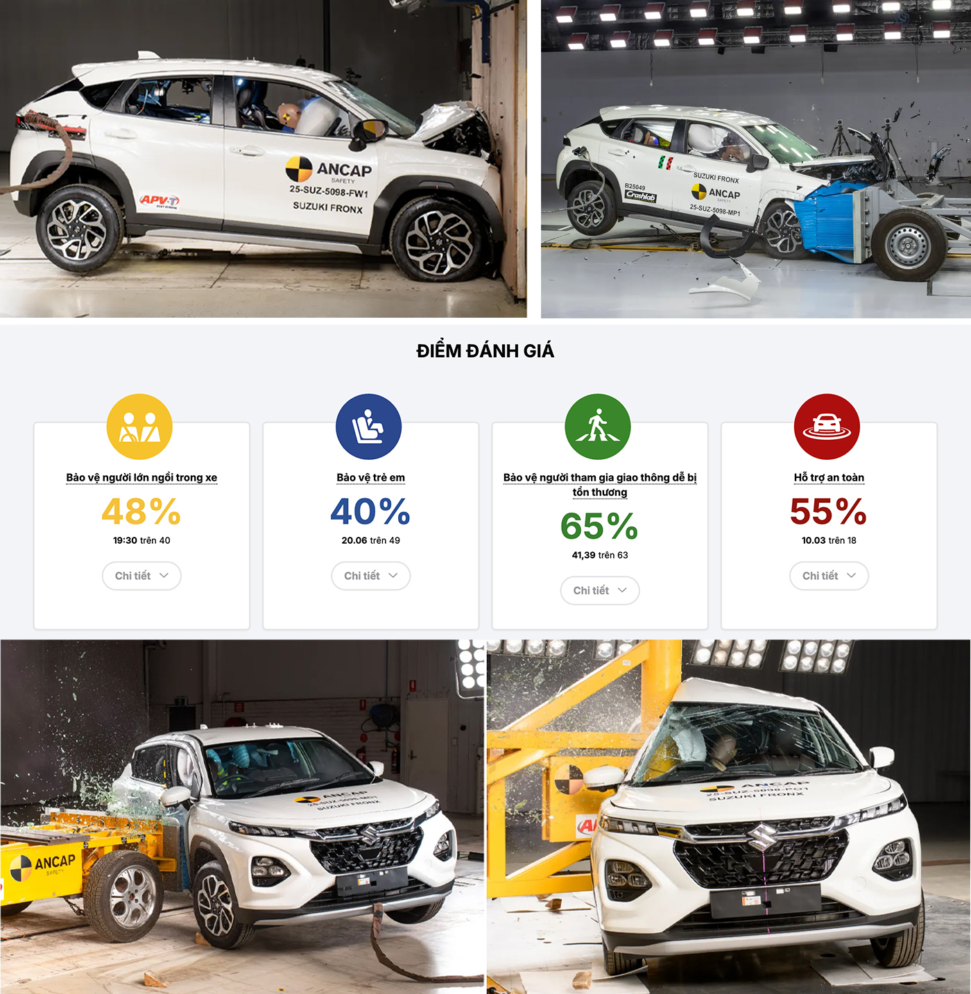 Trung tâm thử nghiệp xe mới khu vực châu Đại dương ANCAP chấm Suzuki Fronx đạt chứng chỉ 1 sao về an toàn.