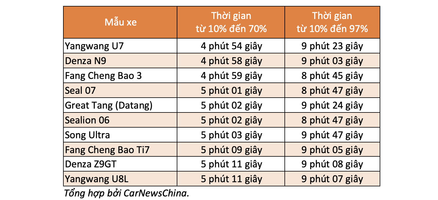 Các mẫu xe của BYD sẽ thích ứng hệ thống sạc nhanh, đạt 10-70% trong 5 phút, từ 10-97% trong 9 phút