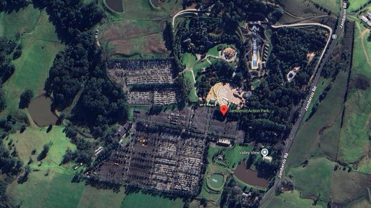 Hàng loạt ô tô đang đỗ tại công viên nước Jamberoo Action.