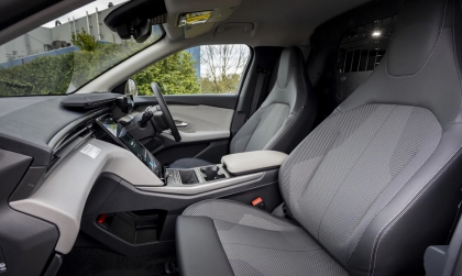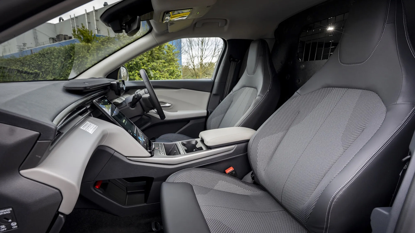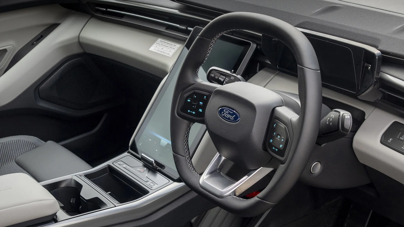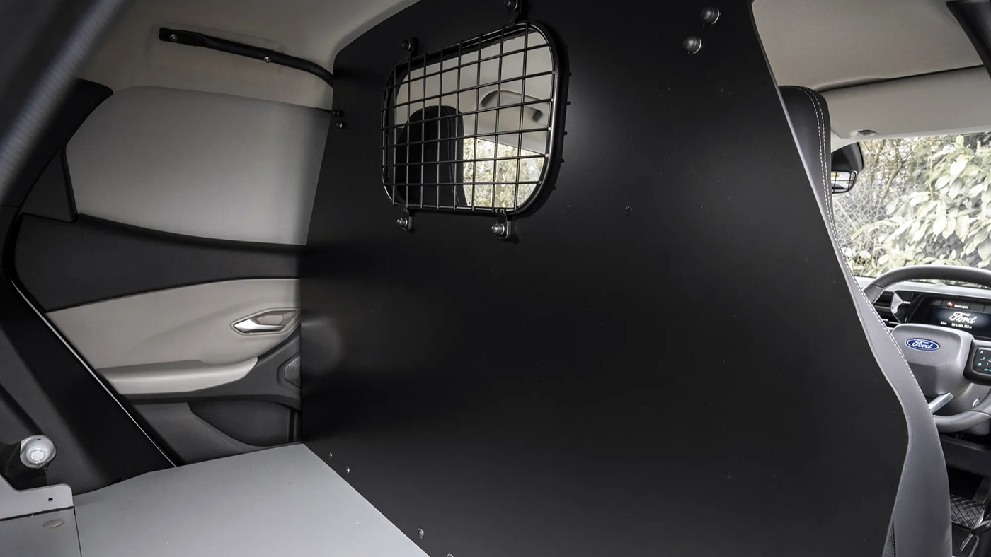 Về ngoại thất, Explorer Van giữ nguyên kiểu dáng của mẫu SUV điện nguyên bản, nhưng được trang bị bộ mâm thép màu đen đơn giản với ốc vít màu vàng sáng, tạo cảm giác thực dụng và bền bỉ. Điểm khác biệt cốt lõi nằm ở khoang nội thất, nơi Trung tâm Chuyển đổi Dagenham của Ford Pro (Anh Quốc) đã lắp đặt một vách ngăn cố định phía sau hàng ghế trước.