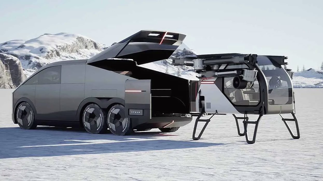 Taxi bay eVTOL được thiết kế có thể thu gọn, xếp gọn vào khoang sau của chiếc xe 6 bánh Land Aircraft Carrier