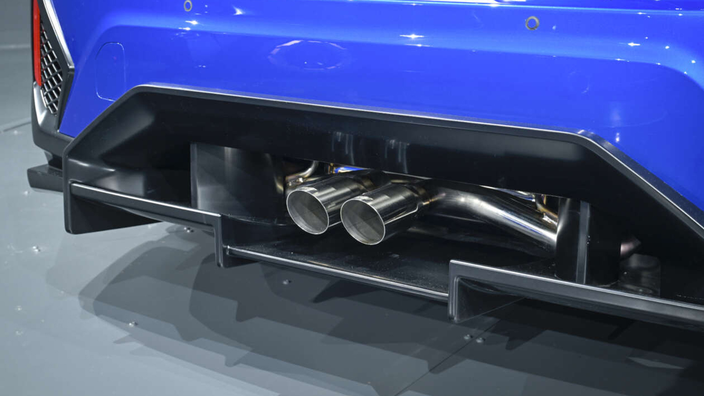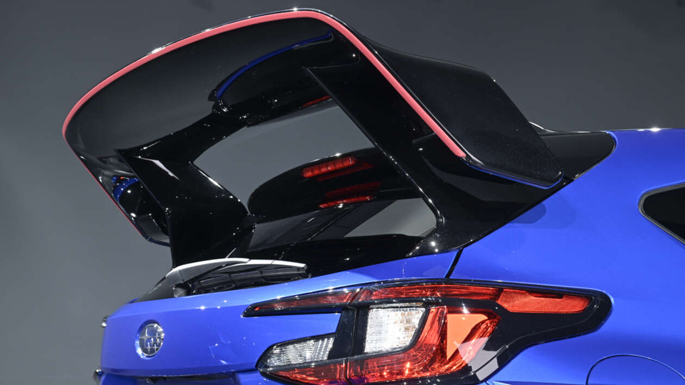 - Đuôi xe nổi bật: Cụm đèn hậu chữ C đặc trưng của Impreza được bổ sung bằng cánh gió sau cao vút theo phong cách "khung thành" và bộ khuếch tán khổng lồ chứa cặp ống xả kép trung tâm.