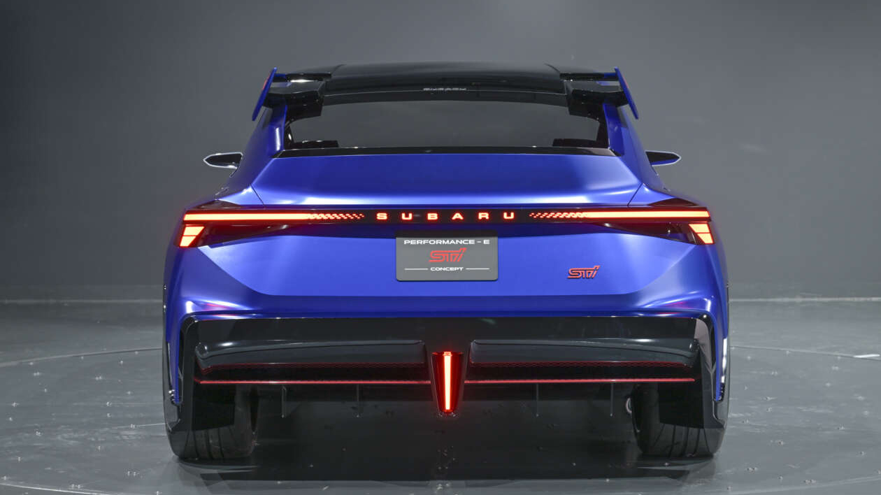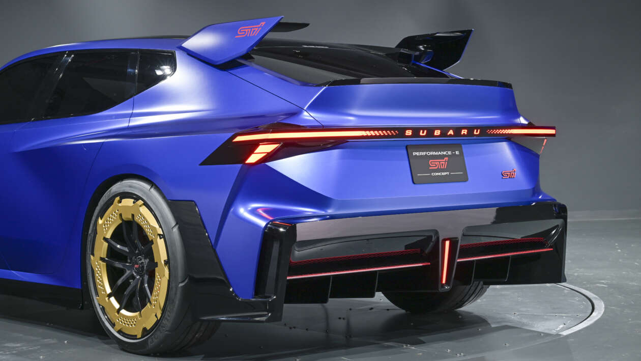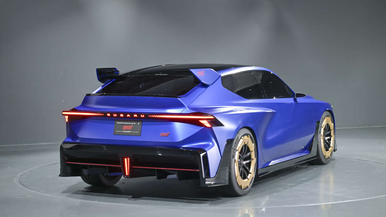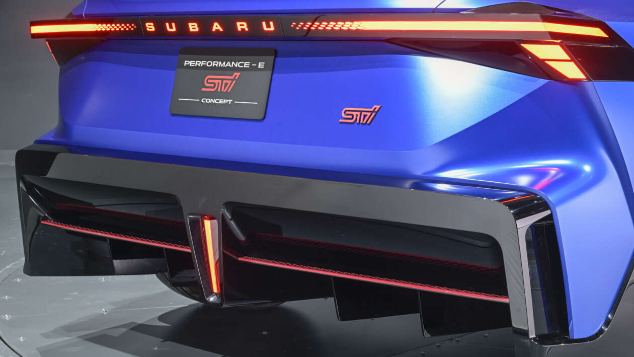 Performance-E STI là mẫu xe thuần điện (BEV), phát triển dựa trên Concept STI E-RA 2022. Mẫu concept này có hình dáng dài và hơi giống wagon, áp dụng ngôn ngữ thiết kế sắc nét và góc cạnh hơn, báo hiệu phong cách tương lai của Subaru.