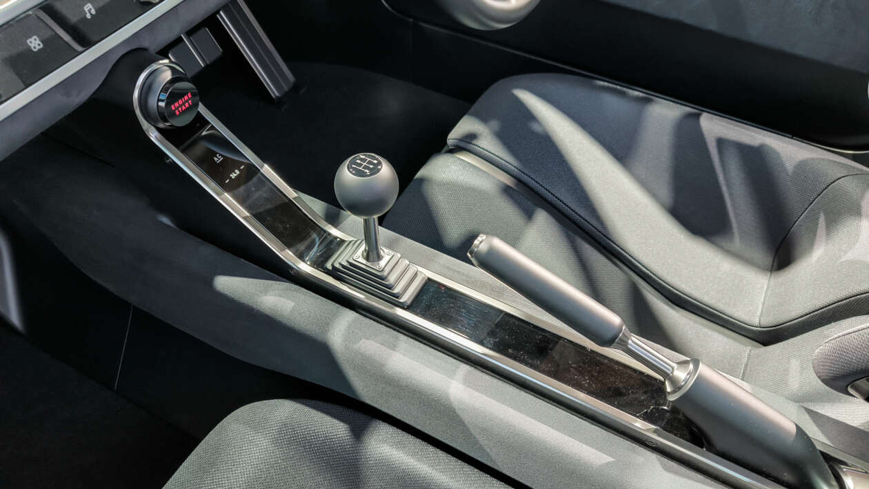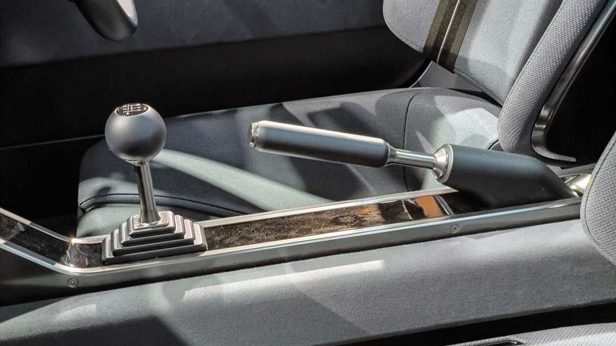 Nội thất Tối giản: Buồng lái vẫn giữ thiết kế tối giản, tập trung vào người lái. Chi tiết đáng chú ý là núm cần số sàn cổ điển, gợi nhớ phong cách hoài cổ. Tay nắm cửa được thay thế bằng dây vải.
