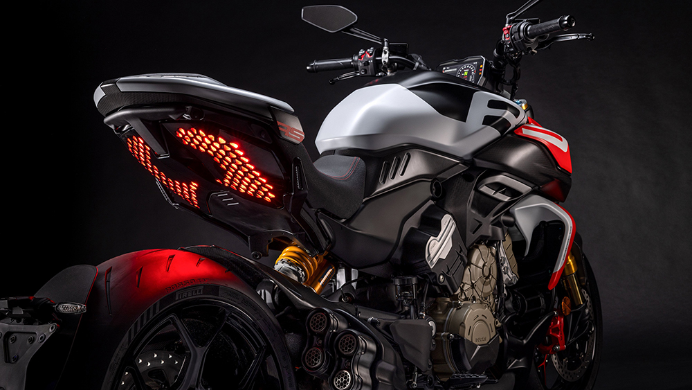 Ducati Diavel V4 RS nhẹ hơn 3 kg so với phiên bản Diavel V4 tiêu chuẩn (236 kg) nhờ việc bổ sung các chi tiết bằng sợi carbon và titan, cùng với việc lắp đặt pin lithium-ion siêu nhẹ. Diavel V4 RS sẽ có mặt tại châu Âu từ tháng 12 năm 2025, và sẽ có mặt tại tất cả các quốc gia khác, bắt đầu từ Hoa Kỳ, từ tháng 1 năm 2026.
