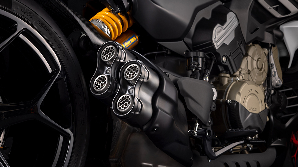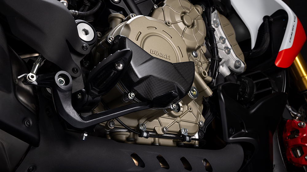 Sức mạnh được truyền qua bộ ly hợp khô STM-EVO SBK được làm từ phôi nhôm nguyên khối, với lò xo và bộ chống trượt đặc biệt giúp xe vận hành mượt mà hơn khi phanh và vào số. Để giảm nhiệt động cơ khi dừng xe, cụm xi-lanh sau sẽ được vô hiệu hóa khi động cơ ở chế độ trung tính và nhiệt độ nước làm mát trên 70 độ C.