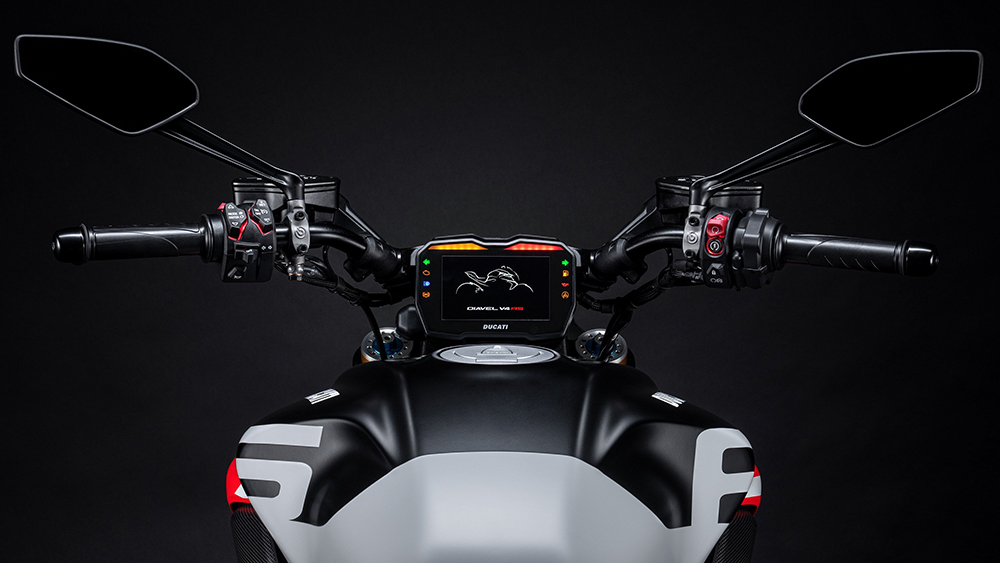 Bộ thiết bị điện tử bao gồm bảng điều khiển có đồ họa mới với màn hình mở dành riêng cho từng chế độ lái. Trên màn hình chính ở chế độ Race, một bảng điều khiển có chức năng tương tự như chế độ Track Infomode (Thông tin Đường đua) trên Panigale V4 và Streetfighter V4.