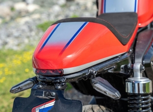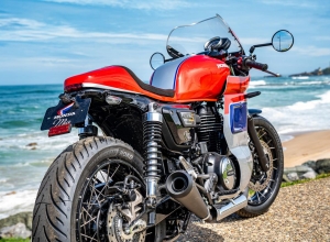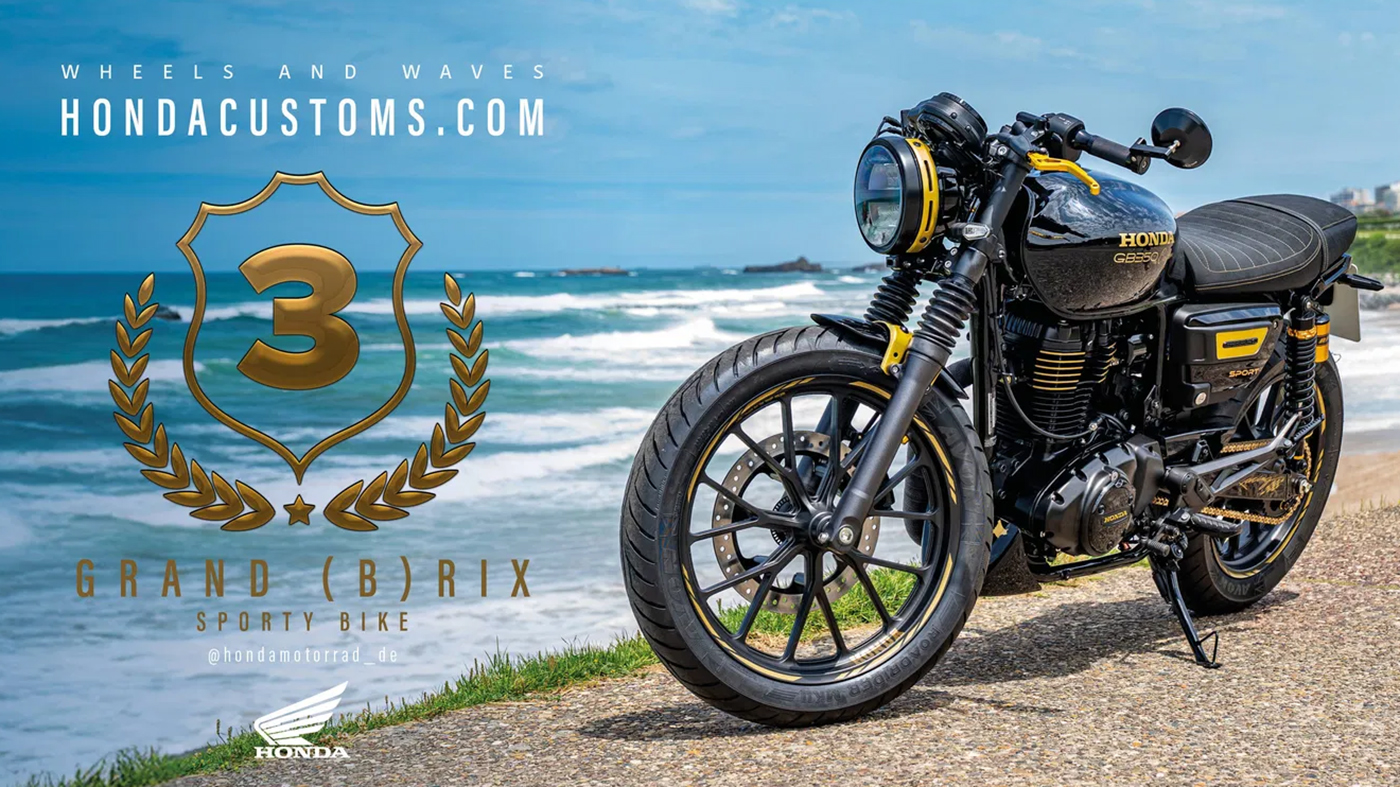 Giống như năm 2024, thêm một đại diện đến từ nước Đức đã xuất hiện trên bục vinh quang, và cái tên được xướng lên lần này là chiếc Grand (B)rix Sporty Bike. Được chế tạo ra bởi đội ngũ tại đại lý Honda Centre hàng đầu ở Frankfurt, Grand (B)rix Sporty Bike toát lên vẻ ngoài vượt thời gian qua sự kết hợp màu đen và vàng, cùng những tinh chỉnh tinh tế, chẳng hạn như bộ giảm xóc được hạ thấp xuống phía trước, tay lái mới với góc nghiêng mạnh mẽ hơn, gương chiếu hậu và tay nắm mới mang đến vẻ ngoài hài hòa, đậm chất cafe racer.