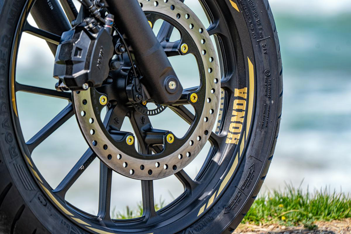 + Chiếc xe này có ệ thống ly hợp hỗ trợ và chống trượt. Honda CB350 cũng ổn định và chắc chắn nhờ vào khung xe đôi, cùng với hệ thống giảm xóc kép ở bánh sau.