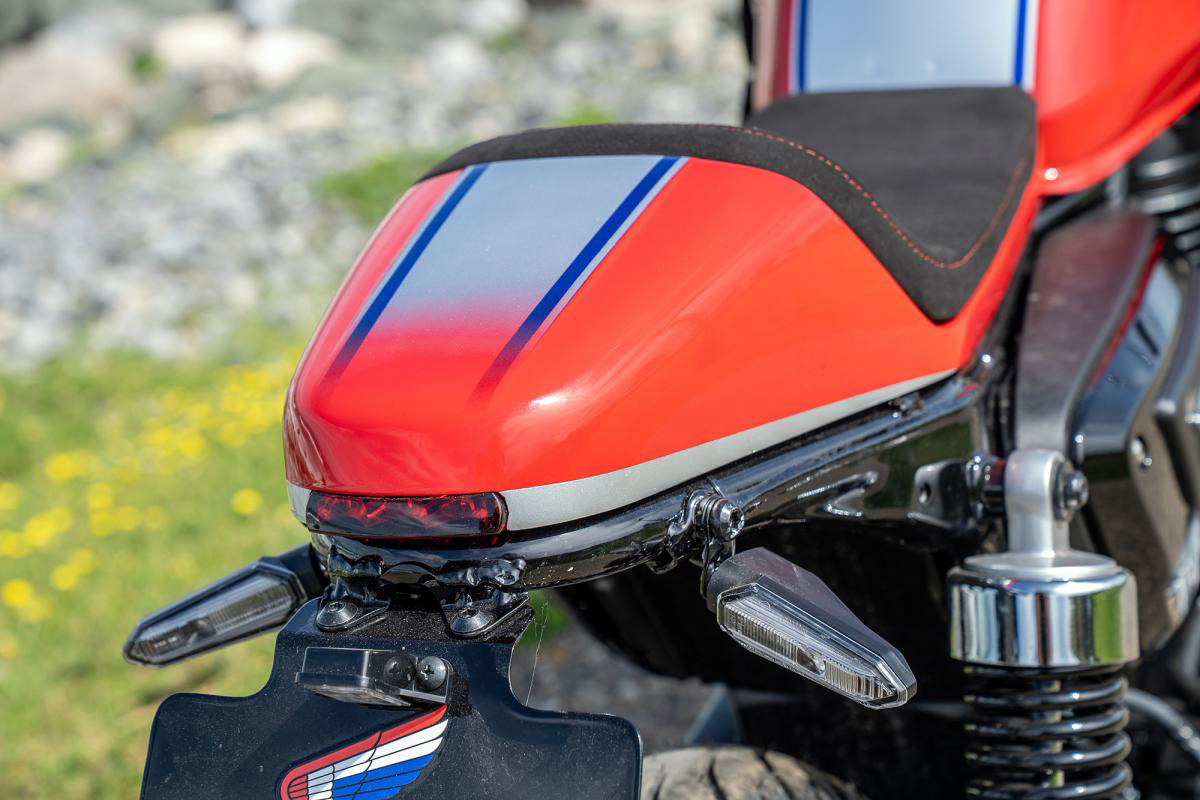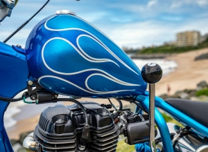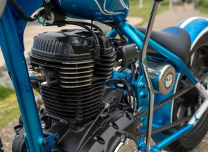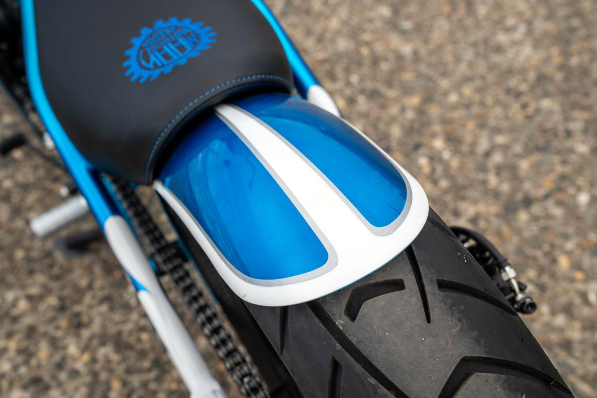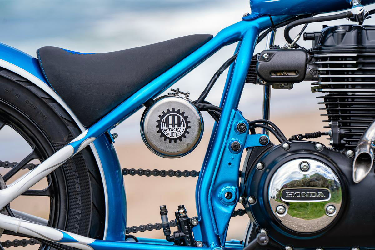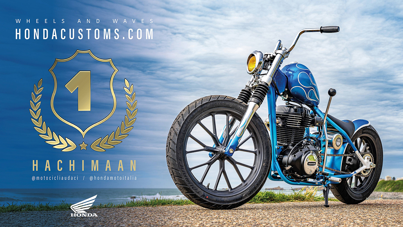 Nhận được tổng cộng 9.572 phiếu bầu - chiếm 31% trong tổng số 30.094 phiếu bầu - trên www.hondacustoms.com có lẽ là phiên bản độ lại cực đoan nhất trên nền tảng mẫu GB350S. Hachimaan ra đời từ xưởng độ MAAN Motocicil (cũng là nhà vô định giải này năm 2022). Chiếc xe mang phong cách Bobber Nhật Bản với lớp sơn xanh lam lấp lánh và một số chi tiết được thiết kế lại khá bắt mắt.