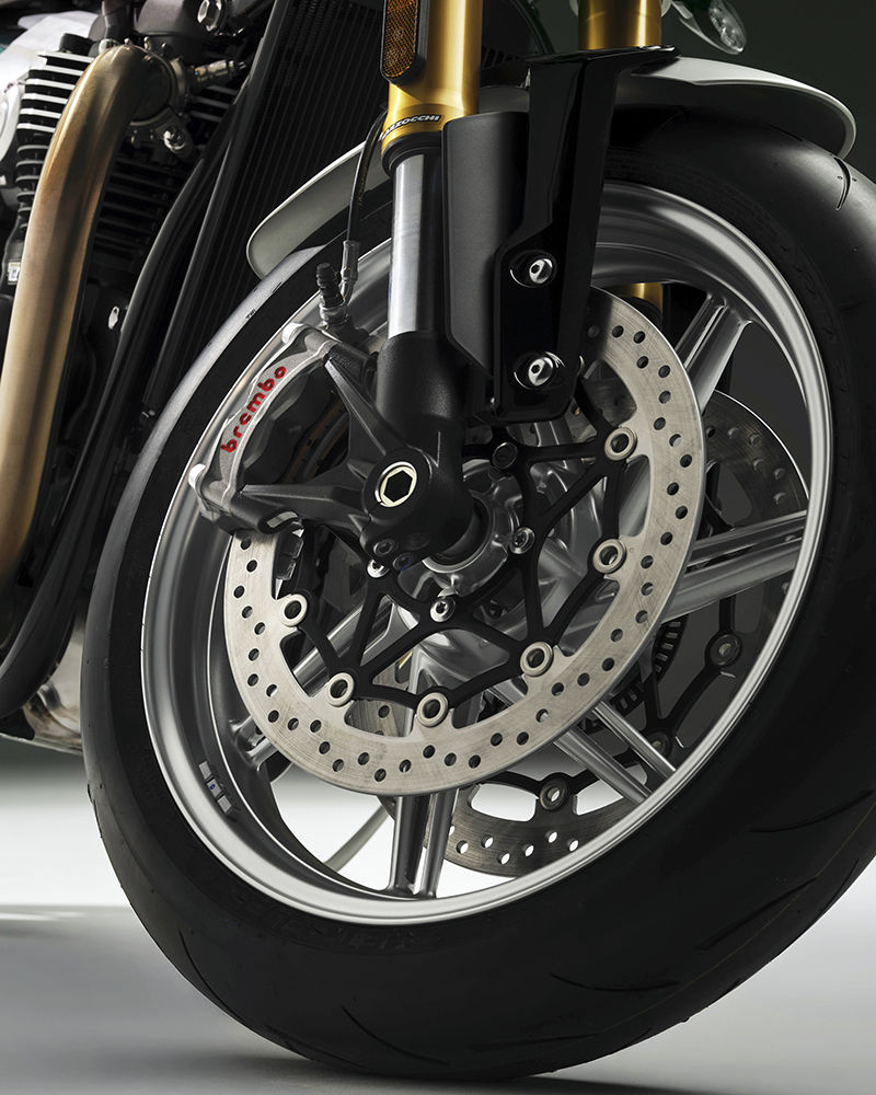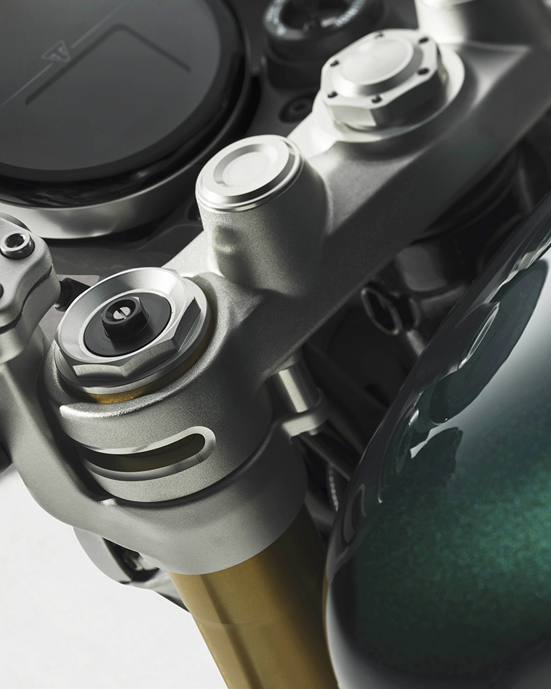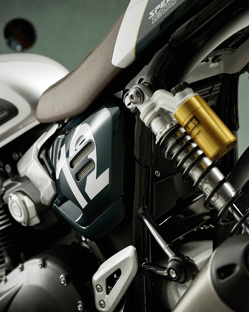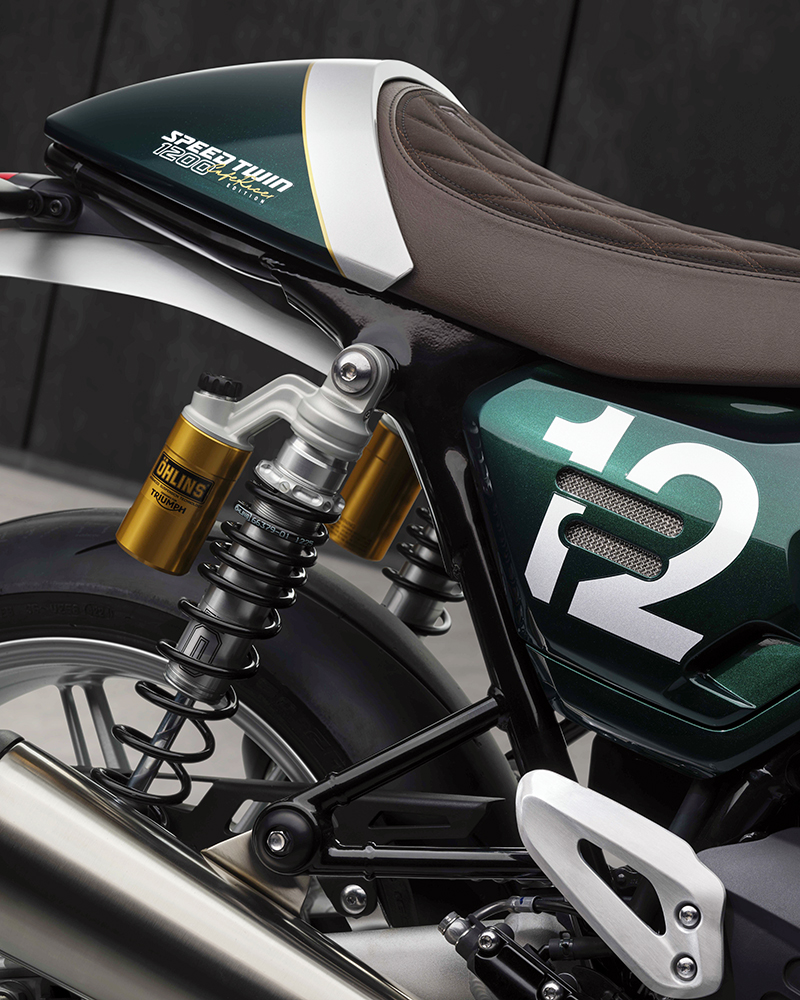 Đáng quan tâm, là một mẫu xe "trưng diện", Speed Twin 1200 Cafe Racer Edition khá nổi bật với giảm xóc trước Marzocchi và giảm xóc sau Öhlins tùy chỉnh toàn phần (cả độ nén và phản hồi). Hệ thống phanh sử dụng kẹp phanh Brembo Stylema kép cùng đĩa 320mm. Lốp tiêu chuẩn là Metzeler Racetec RR K3 thiên về hiệu suất cao.