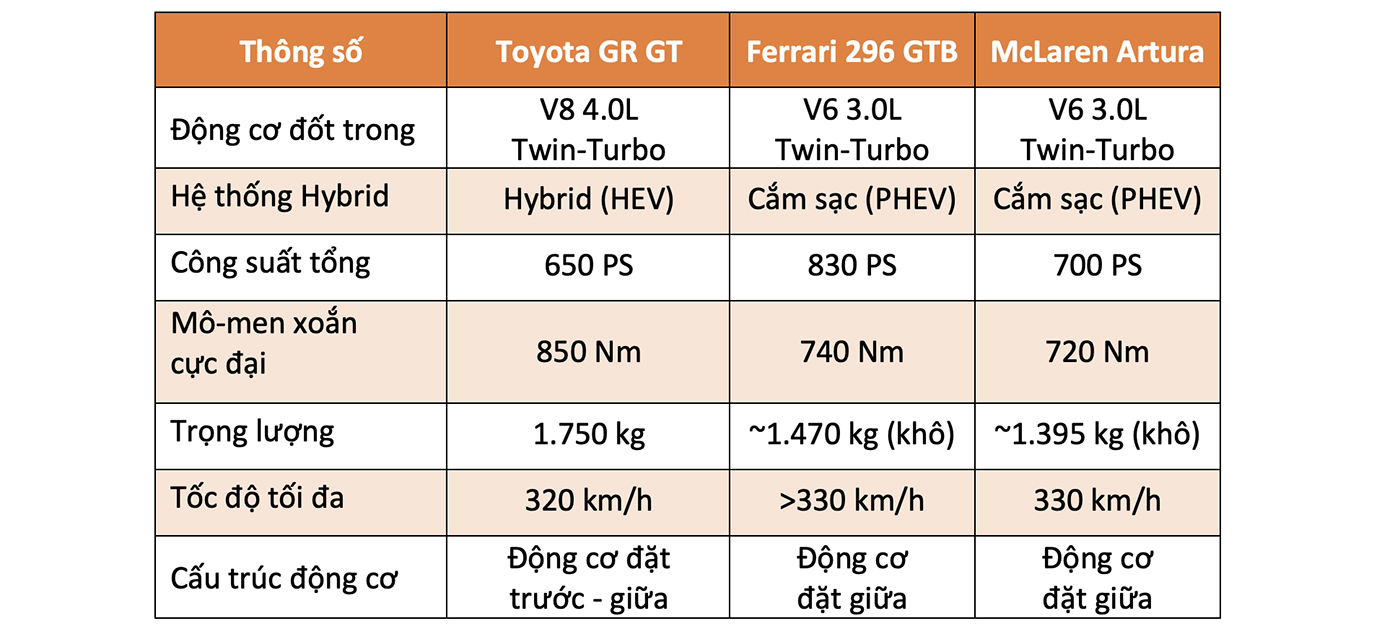 Việc Toyota tung ra GR GT là một lời thách thức trực tiếp gửi đến các "ông lớn" siêu xe châu Âu. Tuy nhiên, cách tiếp cận của Toyota có sự khác biệt rõ rệt về mặt kỹ thuật và triết lý vận hành.