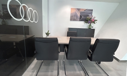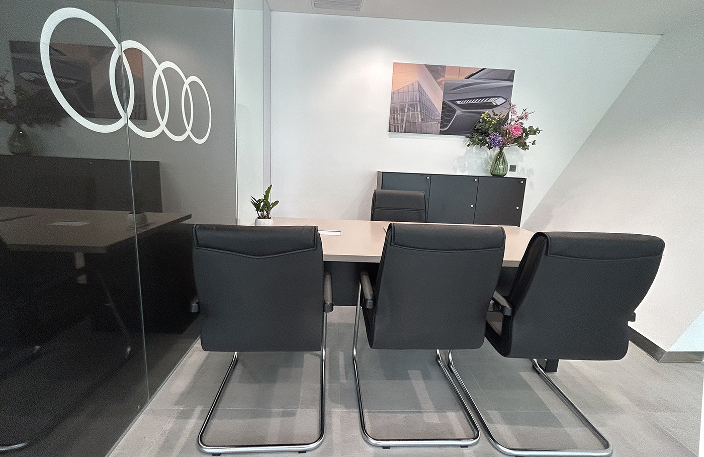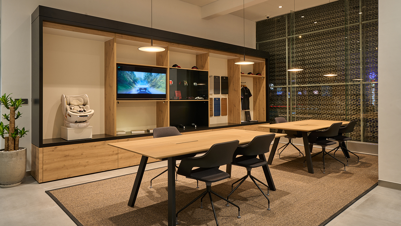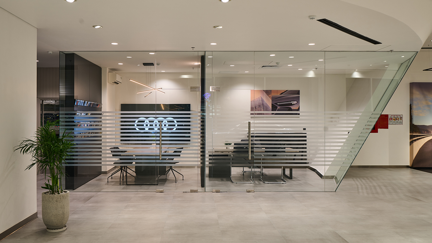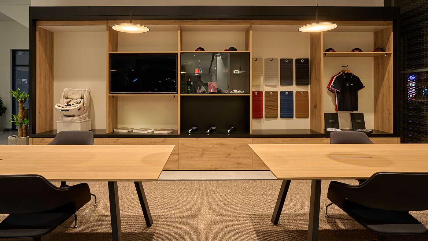Khách hàng còn có đặc quyền tại khu tiếp khách riêng với không gian riêng tư để trao đổi cùng tư vấn bán hàng, trải nghiệm chiếc xe đã được cấu hình trên màn hình lớn, đồng thời lựa chọn màu sơn và vật liệu nội thất theo ý thích. Tiếp theo là khu phụ kiện chính hãng dành cho việc khám phá và tìm hiểu chi tiết các phụ kiện chính hãng Audi, và cuối cùng là khu vực bàn giao xe – nơi khách hàng nhận chiếc xe mới theo cách cá nhân hóa và sang trọng nhất.