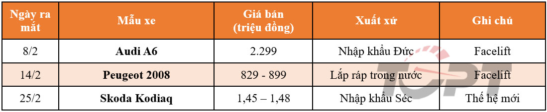 Tháng 2 vừa kết thúc thời điểm Tết Nguyên đán nên không có quá nhiều mẫu xe mới xuất hiện, nhưng đều có xuất xứ từ thương hiệu châu Âu. Trong đó, Audi A6 được đưa về trong năm 2025 nhằm đón nhận mức giảm thuế nhập khẩu từ châu Âu theo đúng lộ trình, trong khi Skoda Kodiaq thế hệ mới được giới thiệu với giá khá cao dù cũng có nguồn nhập khẩu tương tự.