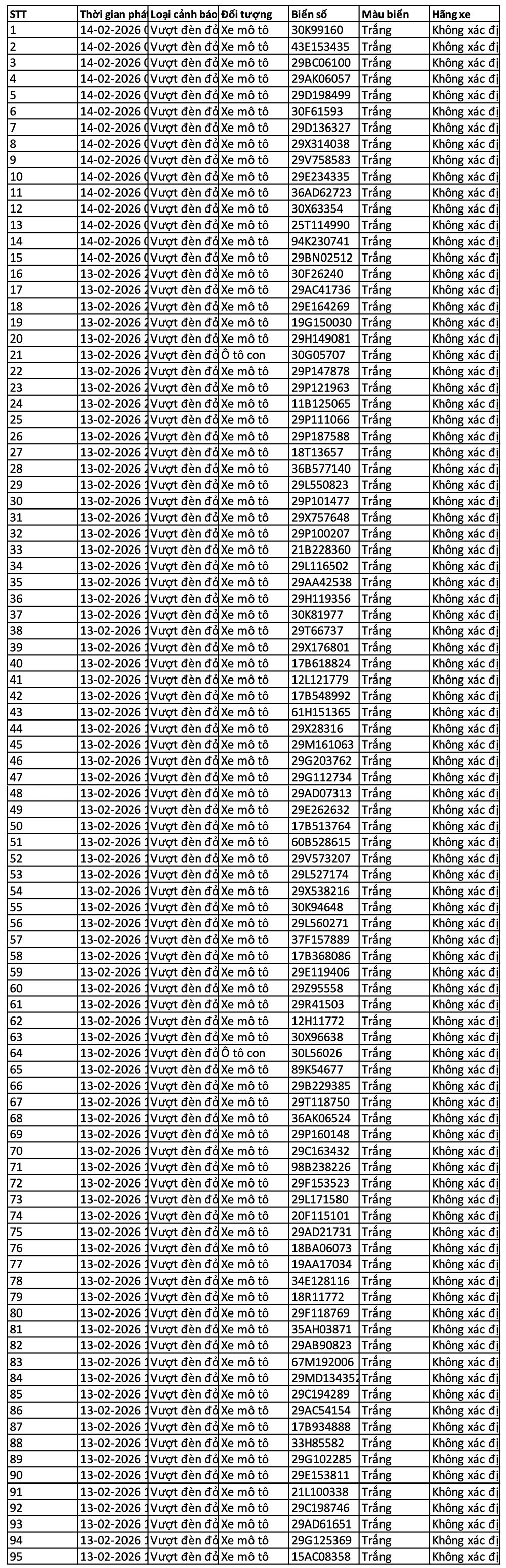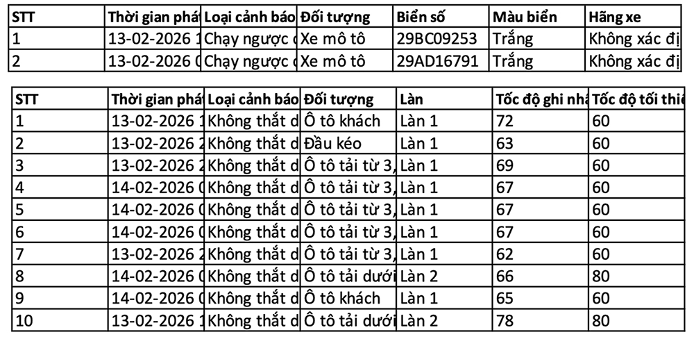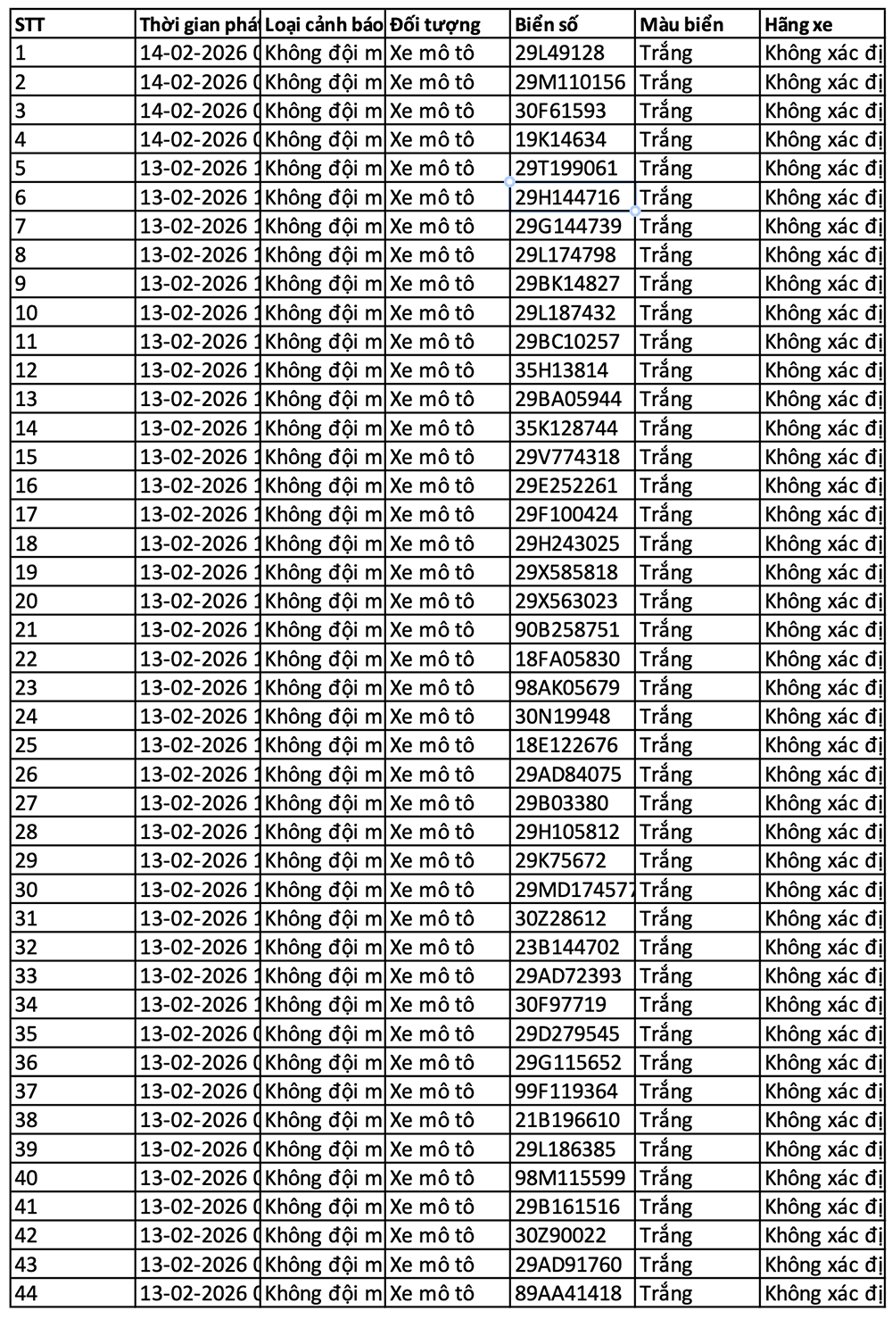 Trong danh sách này, các lỗi được hệ thống camera AI ghi nhận bao gồm: